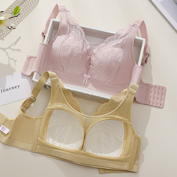 Reggiseno senza fili in pizzo completo comodo da donna in reggiseno lavorato a maglia in Nylon di grandi dimensioni con spalline regolabili