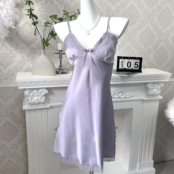 ชุดนอนผ้าไหมน้ำแข็งชุดนอนเซ็กซี่สำหรับผู้หญิง, ชุดนอนหรูหราสไตล์ฝรั่งเศสระดับไฮเอนด์